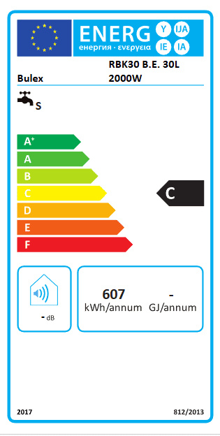 De 30 liter keukenboiler van Bulex voor plaatsing boven de gootsteen.